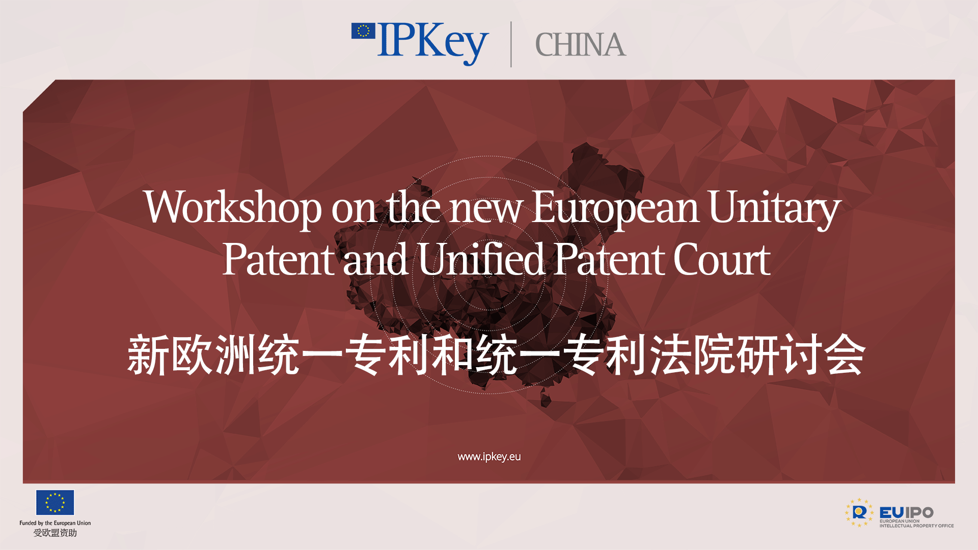 IP Key China, the European Patent Office and CNIPA co-organised a one-day workshop where details of the new European patent system will be disclosed. Please consult the agenda for detailed information.